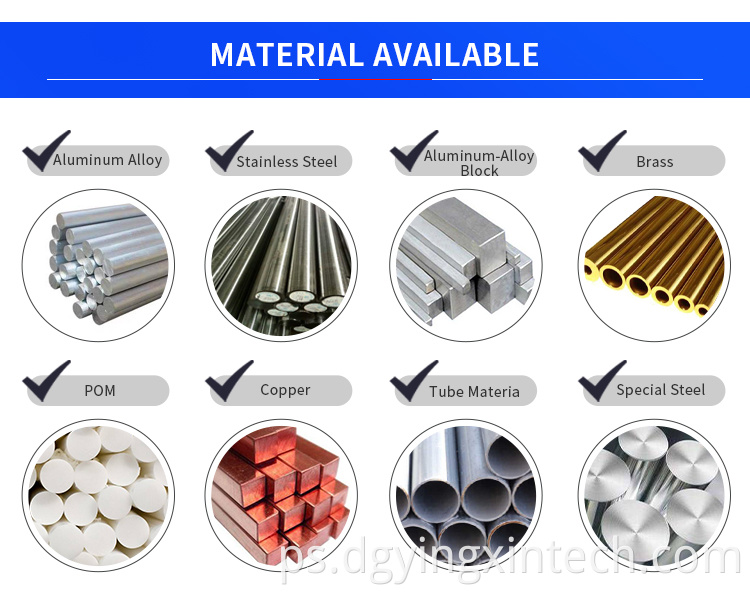 Materials Avaiable | Such as aluminum, copper, stainless steel, iron, PE, PVC, ABS, etc. | |